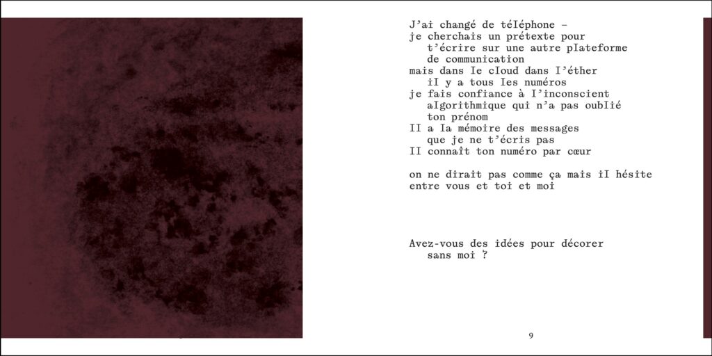 Qui va là ? Un être aimé manquant, soi-même comme un autre, un monde en cage ? Entre les deux dimensions d’un écran bleuté, trente et un poèmes sur l’amour et la mort creusent des perspectives aléatoires. En face, sur la page, sur la peau, douze hématomes.